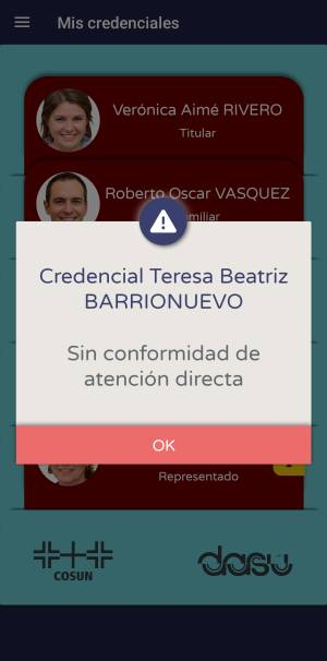 El titular puede ver todas las credenciales de su grupo familiar y de sus representados.